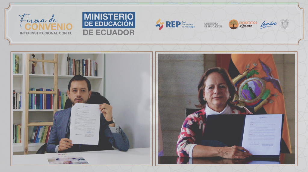 [vc_row][vc_column][vc_column_text] La suscripción del convenio específico de cooperación interinstitucional entre el Ministerio de Educación y la Red Ecuatoriana de Pedagogía se desarrolló el lunes 12 de abril de 2021. La firma oficial del documento se realizó entre Monserrat Creamer, Ministra de Educación; Josué Habacuc, Director de la REP y Lizeth Cueva, Directora Nacional de Formación […]