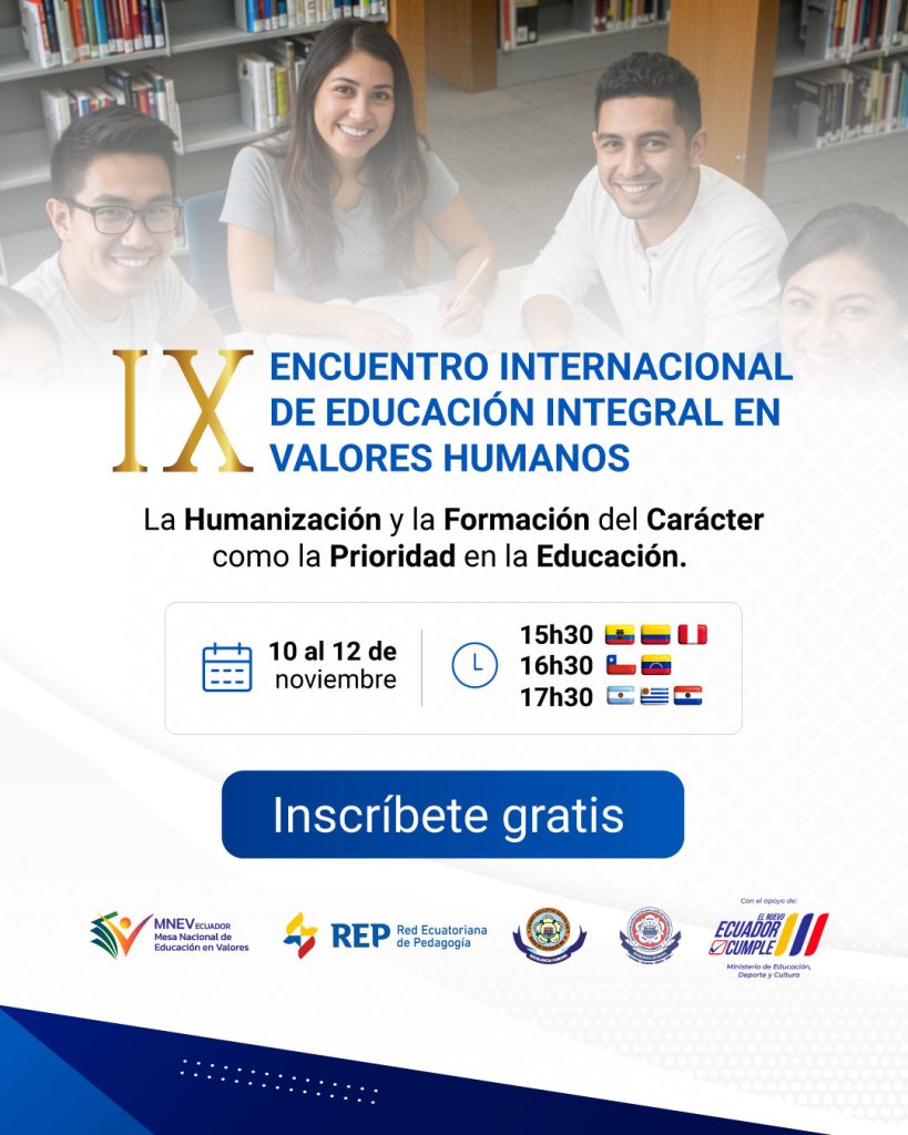 ¡Acompáñanos en la IX Encuentro Internacional de Educación Integral en Valores Humanos! Sigue la transmisión en directo a través del canal de YouTube de la Red Ecuatoriana de Pedagogía.